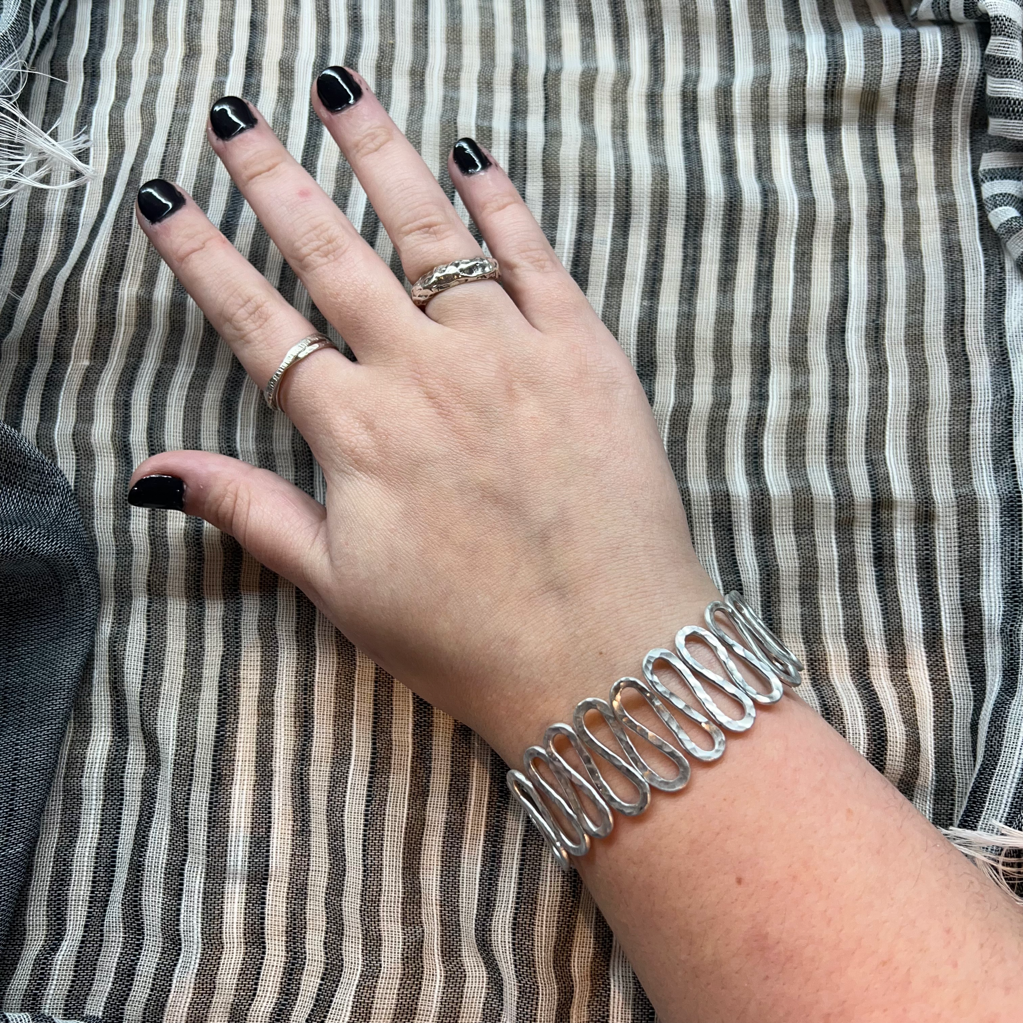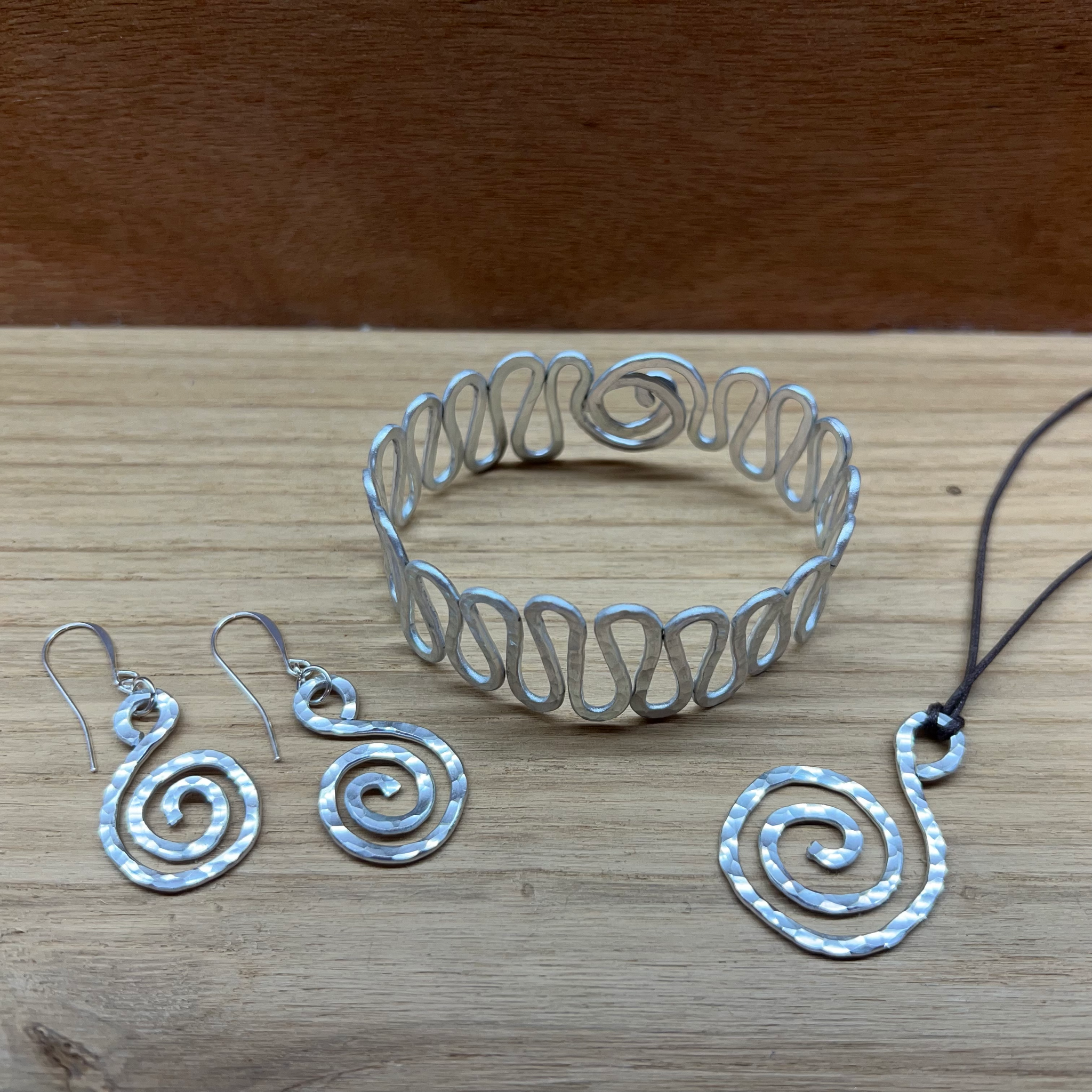 Students will walk away with an aluminum wire cuff and the possibility of a spiral pendant and earrings. Interested in working with metal? Hammered jewelry is a great introduction point to metalwork, specifically forging. It is a fun and accessible way to work with metal and can really take your jewelry making skills to the next level!