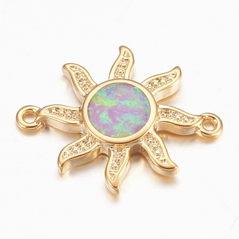 This cute little link is bright and vibrant made with synthetic opal and long-lasting, gold-plated brass.