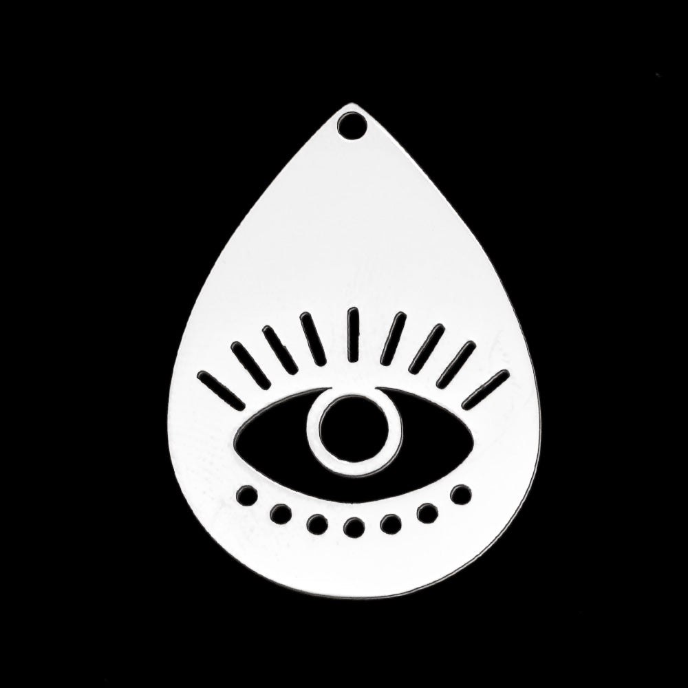 Made with 201 stainless steel, this laser cut teardrop evil eye is a great pendant for earrings, necklaces or decorative hangers.